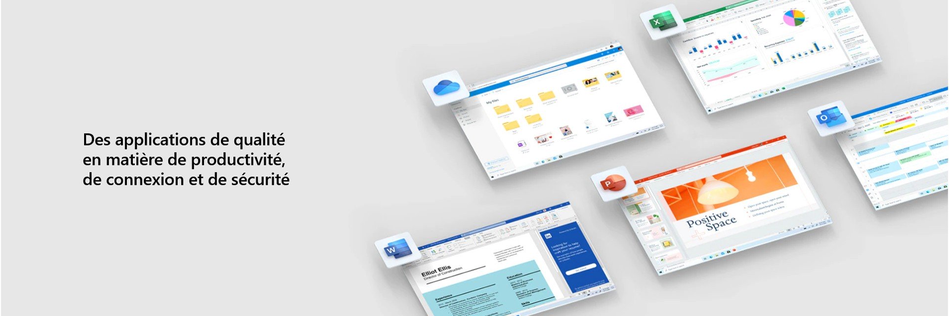 Utilisez Microsoft 365 Apps pour le web, notamment Outlook, Word, Excel, PowerPoint et OneNote.